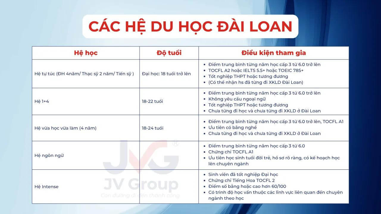 1. Hệ Du Học Tự Túc Đài Loan (Đại học – Thạc sĩ – Tiến sĩ)